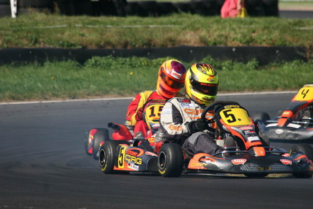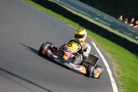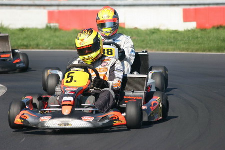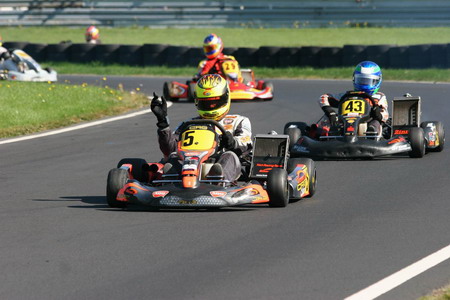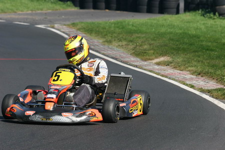 Obwohl der Goldpokal in Wittgenborn nicht gerade zu seinen erfolgreichsten Rennwochenenden gehörte, konnte sich Sascha Molly im Schlussspurt noch die DMV-Bundesmeisterschaft der Senioren sichern. Am Ende reichten die Plätze acht und elf, um den Titel doch noch zu holen. „Es war insgesamt keine lupenreine Saison, wir hatten doch den einen oder anderen Rückschlag zu verkraften“, meinte der Zinner-Pilot. „Aber ich bin sehr froh, dass es unterm Strich doch geklappt hat und möchte mich dafür beim ganzen Team herzlich bedanken.“ Die Probleme im Saisonfinale waren kurz nach den Rennen noch nicht zur Gänze analysiert, gerieten aber angesichts der Feierlaune auch zur Nebensache. Fakt ist, dass es schon im Zeittraining nicht so gut lief für den 16-Jährigen. Bisher war er besseres als Platz zehn gewohnt. Auch in den Rennen ging es nur langsam vorwärts, immer wieder kamen Rempler und Schubser dazwischen, die Sascha ausbremsten. Im zweiten Lauf büßte er dadurch sogar noch Plätze ein, wusste aber, dass er nur vor seinem ärgsten Konkurrenten ankommen musste. So war der erhoffte Goldpokal zwar in andere Hände gefallen, die DMV-Bundesmeisterschaft der Senioren aber ging an Sascha Molly.