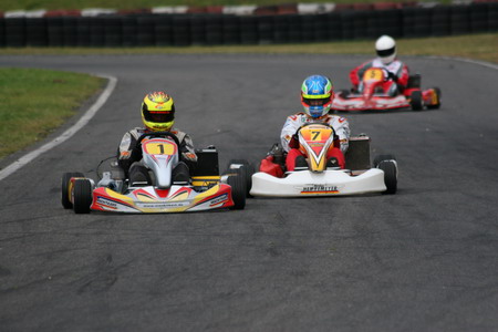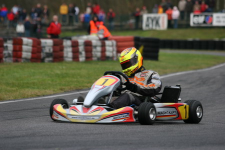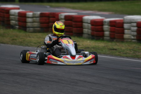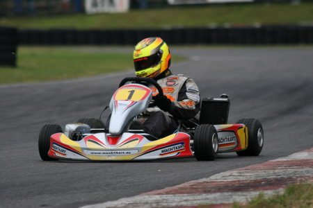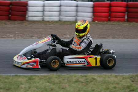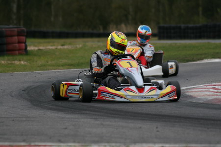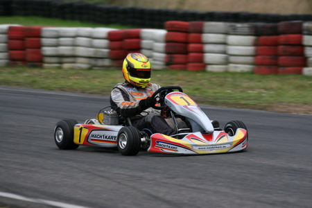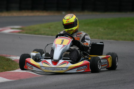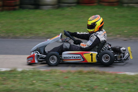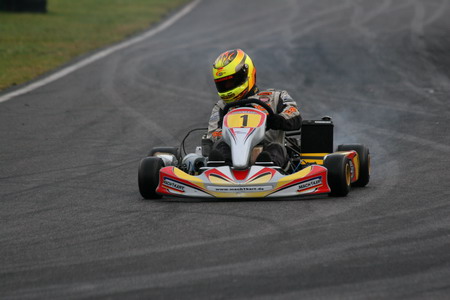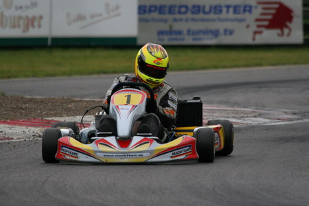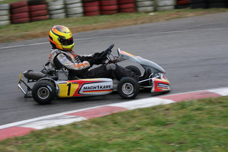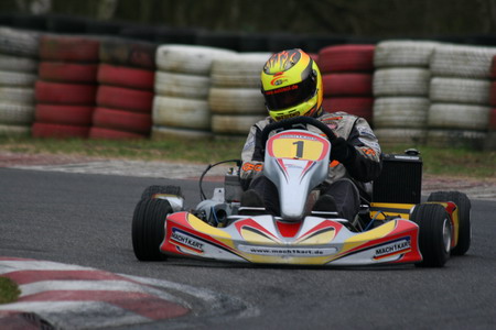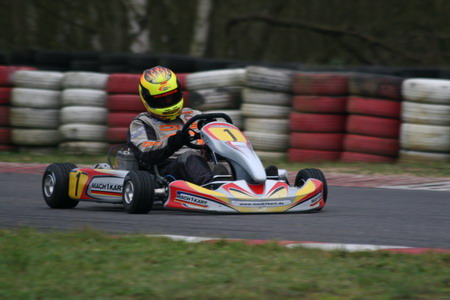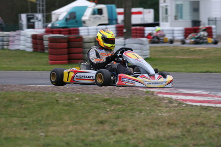 Mit einem weiteren Chassis-Test meldete sich Sascha Molly beim Winterpokal der Senioren in Kerpen zu Wort. In der Formel A ging er im Mach 1 Racing Team Baral an den Start. Schon am Samstag gehörte er mit zu den Schnellsten im Feld, in den Rennen sonntags schlich sich allerdings das Pech ein, sodass Sascha nicht ganz vorne zu finden war. „Im Prinzip bin ich ganz zufrieden. Das Chassis geht sehr gut, leider hatten wir in den Rennen Probleme mit den Motoren.“ Doch das war nicht die einzige Schwierigkeit. Auf den vierten Platz im Zeittraining folgte im ersten von drei Läufen der Ausfall in der ersten Runde. Sascha geriet auf den Curb und zerstörte sich dabei seine Kette. Im zweiten Rennen arbeitete er sich auf den dritten Platz vor. „Das war schon ganz in Ordnung. Leider haben wir uns im dritten Lauf dann mit den Reifen verpokert.“ Zu Beginn dieses Rennens war die Strecke nämlich noch nass. Wie rund die Hälfte des Feldes hatte der Niedersteinebacher auf Regenreifen gesetzt. Doch der starke Wind ließ die Strecke schnell abtrocknen, so konnte er sich nur vier Runden lang darüber freuen, dass er in der Spitzengruppe dabei war. Dann nämlich kamen die Slick-Fahrer auf und ließen den Rest alt aussehen. Letztlich kam für Sascha in der zwölften von 15 Runden auch noch ein weiterer Ausfall hinzu. In der Tageswertung landete er auf dem fünften Platz und hat damit noch gute Aussichten, beim zweiten Winterpokalwochenende am 4. März weiter vorne zu landen.