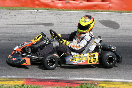Mit neuem Team präsentierte sich Sascha Molly beim zweiten Lauf zur Deutschen Kart Meisterschaft in Ampfing. Allerdings hatte er bei Adolf Neubert und Eurokart CRG Germany altbekanntes Material zur Verfügung. Damit hielt er sich im international stark besetzten Klassement der Königsklasse des deutschen Kartsports sher gut im Mittelfeld und fuhr im Finale in die Top Ten.